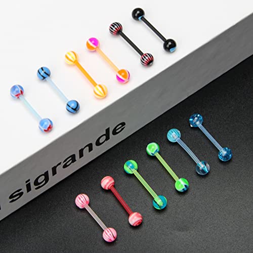 CrazyPiercing 100Pcs 14G Acrylic Tongue Rings, Multi Color Assortment Flexible Tongue Rings Barbells Mix Piercing 6