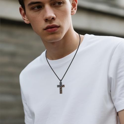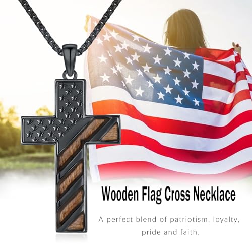 • Black American Flag Cross Necklace for Men Material: This July 4 necklace made of wood and 925 sterling silver American flag cross necklace. Highly polished, exquisite craftsmanship, nickel free, lead free, and hypoallergenic and skin-friendly. You don't have to worry about it darkening your Beautiful neck.