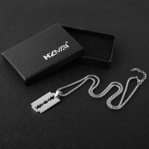 HOT ! HZMAN Mens Stainless Steel Razor Blade Model Dog Tag Pendant Hip Hop Necklace,22+2" Chain