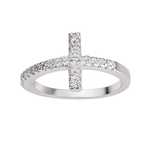CloseoutWarehouse Cubic Zirconia Christian Sideway Cross Ring Sterling Silver (Comes in Colors) 4