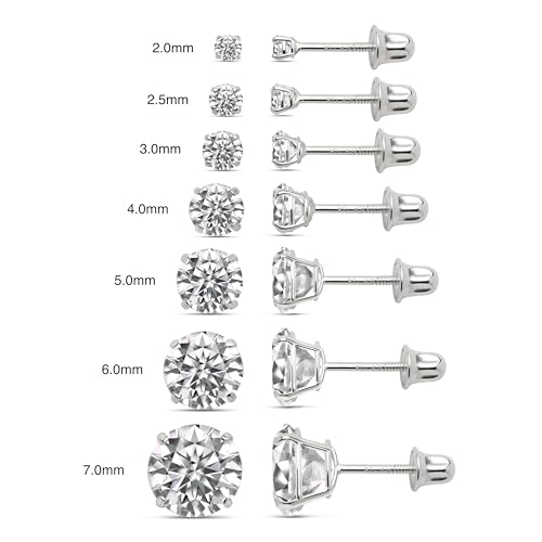 Olivia's Collection 14k White or Yellow Gold Screw Back Stud Earrings (2.0-7.0mm), Piercing to the Lobe, Upper-Lobe, and further piercing for a Woman, Man, and Teens 6