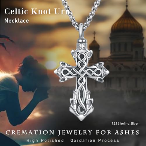 Celtic Cross Ashes Necklace 925 Sterling Silver Cross Urn Necklaces for Ashes Celtic Knot Urn Ash Pendants Memorial Keepsake Cremation Jewelry for Women Men 5