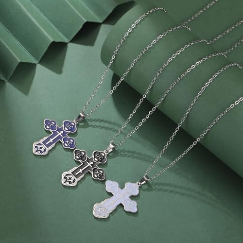 TEAMER Cross Necklace Russian Orthodox Crucifix Eastern Church Necklace Religious Christian Prayer Jewelry for Men Women 3