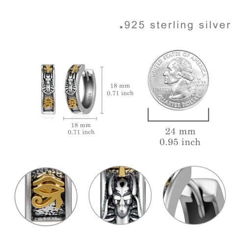 • High Quality Material: The Anubis hoop earrings are crafted with precision 925 sterling silver. The pure silver material is nickel free, lead-free, and hypoallergenic, making it perfect for daily wear, even for sensitive skin types.