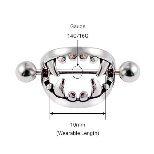 14G 16G Spooky Nipple Piercing Jewelry for Halloween, Vampire Skull Nipple Rings Surgical Steel for Men and Women, Nipple Shields Barbell Rings 4