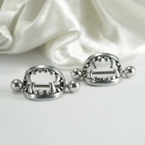 HOT ! 14G 16G Spooky Nipple Piercing Jewelry for Halloween, Vampire Skull Nipple Rings Surgical Steel for Men and Women, Nipple Shields Barbell Rings