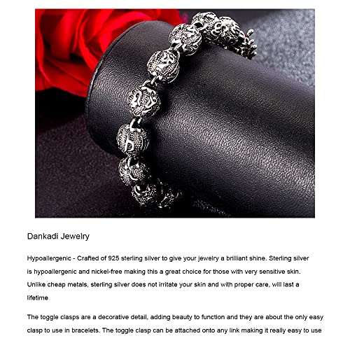 More information about 925 Sterling Silver Carved Mantra Bead Dragon Chain Lucky Wealthy Amulet Bracelet for Mens (Silver Black Two-Tone Polished)