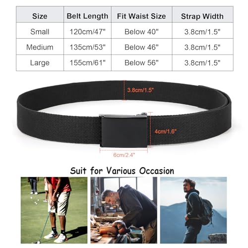 WHIPPY Canvas Web Belt Flip-Top Solid Black Military Buckle Fully Adjustable Mens Webbing Belts Cut To Fit 6