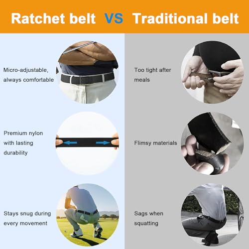 • 1-SECOND ADJUSTMENT WITH CLICK BUCKLE DESIGN: Slide-and-click ratchet system enables micro-adjustments with one hand in seconds. No preset holes—just smooth, precise tightening that adapts to body movement, layered clothing, or post-meal expansion.