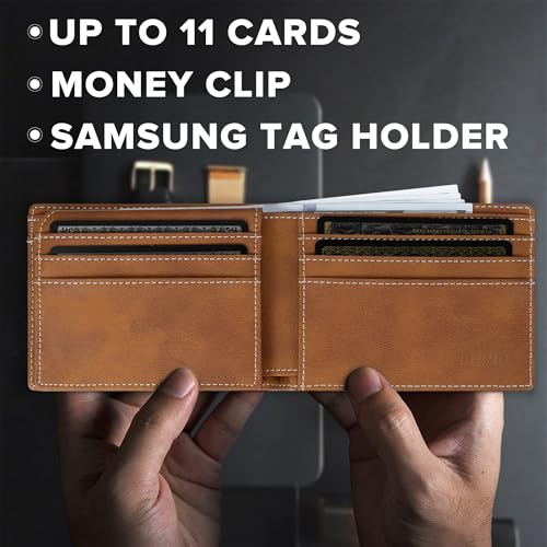 furid Leather Wallet for Samsung Galaxy SmartTag2: Slim Minimalist Wallet Compatible with Samsung Tracker Tag - RFID Blocking Bifold Wallet 2 ID Window 7