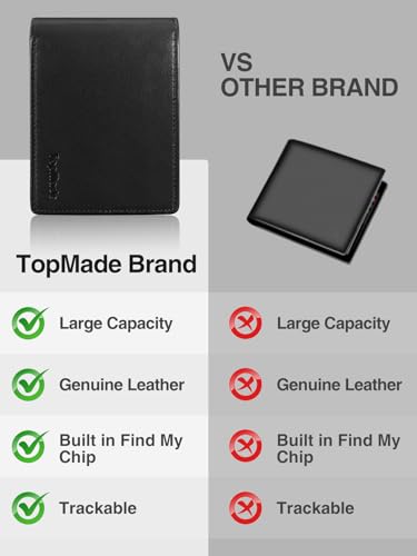 HOT ! TopMade Mens Wallet with Smart Tracker, Genuine Leather Bifold Wallet Works with Find My App, 13 Cards High Capacity with ID Window, Cash Slot, Coin Pocket, RFID Blocking, GPS Wallet Tracker, Black