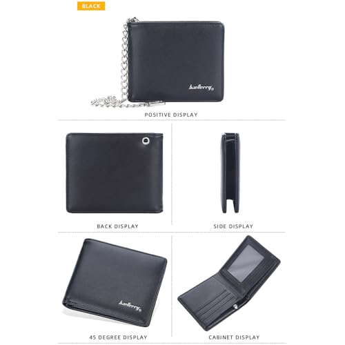 PINKPIN Mens Wallet with Chain, PU Leather Card Wallet Anti-Theft Short Wallet Chain for Biker, Motorcycle (Black) 6