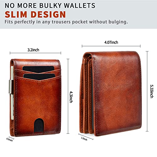 HOT ! Real Leather Slim Wallet for Men RFID Blocking Front Pocket Bifold Wallet Minimalist Credit Card Holder with Gift Box (Brown)