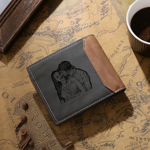HOT ! Gifts for Men Personalized Photo Wallet for Men Fathers Day Wallet with Picture & Name Leather Bifold Wallet Wallet for Dad Father (Style 3)