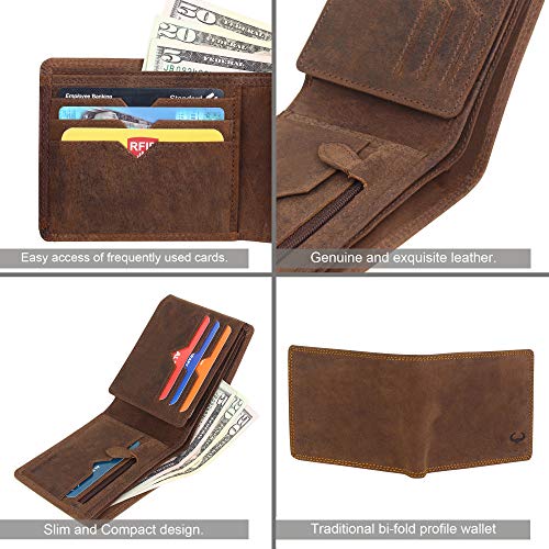 More information about Men’s RFID Blocking Wallet - Classic Bifold Design - Zipper Coin Pocket - Genuine Hunter Leather (Brown)