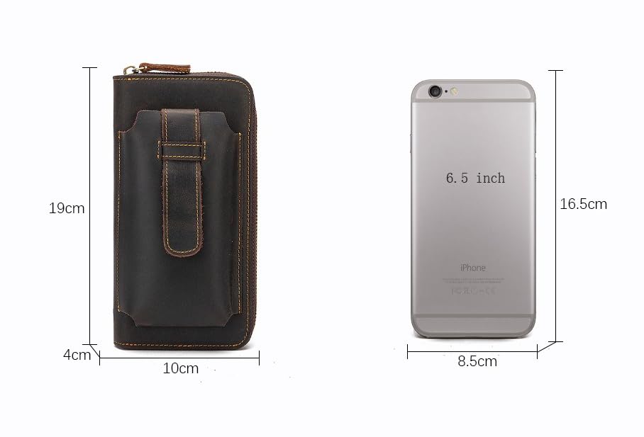 Retro Mens Genuine Leather Long Handbag Wallet with Phone Pocket Multi Compartments Daily Use (Coffee) 5