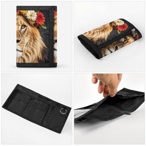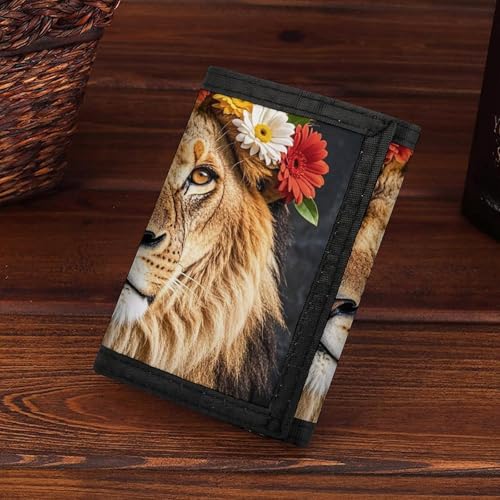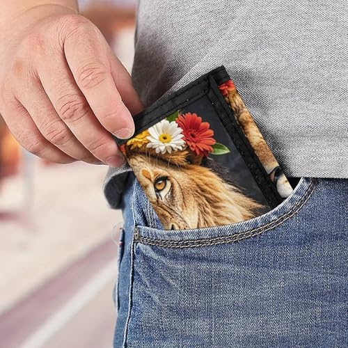 HOT ! African Lion Wearing A Flower on Its Head Trifold Wallet for Men - Money Clip Slim Wallets with Multiple Card Slots Minimalist Small Front Pocket Wallet for Everyday Carry