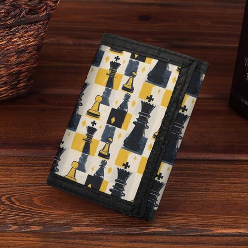 • Design: Featuring a versatile trifold design, this men's wallet includes a front zipper compartment for quick access to essentials. Inside, there are spaces dedicated for ID cards, cards, and changes. The inclusion of a keychain allows you to carry your keys effortlessly, making it a Yellow And Black Chess Print simple wallet for men that's all about practicality