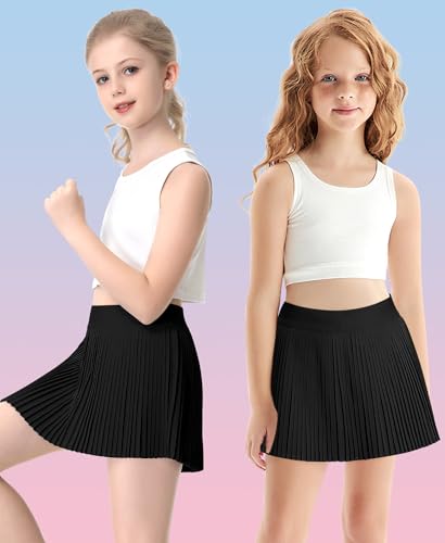 QooNoo Girls Pleated Athletic Skirts with Shorts 2 in 1 Tennis Skorts with Pocket High Waist Golf Skirt for Youth Kids 2