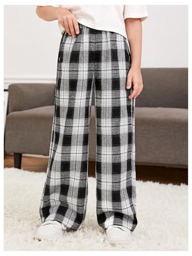 Girl's Plaid Wide Leg Pants Elastic High Waisted Trousers Trendy Sweatpants with Slant Pockets Black and White 9Y 4