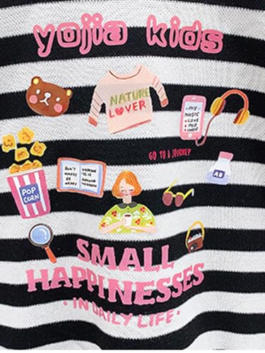 • Black and white striped design, drop shoulder, round neckline, soft handfeel, straight leg fit, top with cute print.