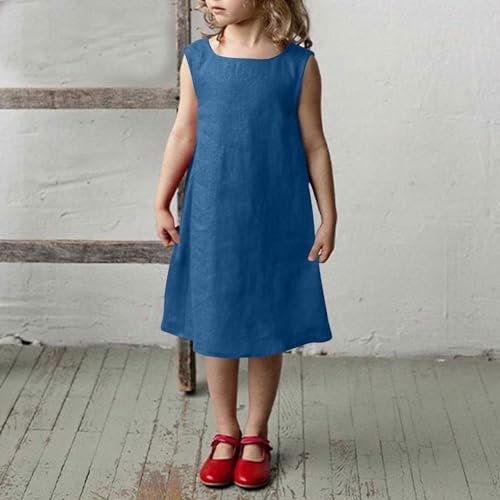 Girl's Summer Dresses Sleeveless Cotton Linen Beach Athletic Dresses Kids Cute Back Tie A Line Tank Dresses Clothes 6