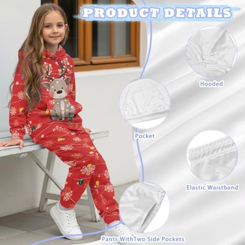 Christmas Deer Boys Hoodie Pant Sets 2 Piece Girls Sweatsuit 3D Print Hooded Sweatshirt Sweatpant Set Graphic Hoodie Set for Teen Girls 5