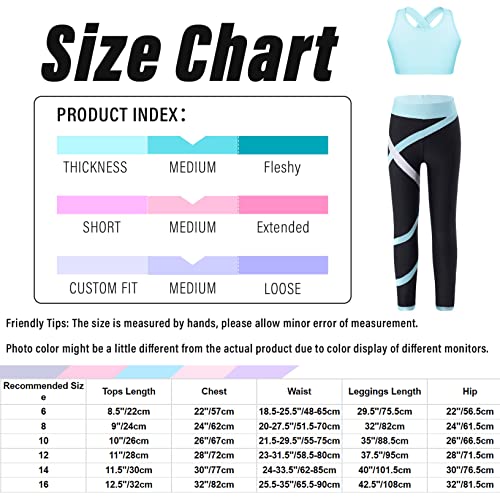 YEAHDOR Kids Girls 2 Pcs Sport Outfit Gymnastics Dance Athletic Outfits Sleeveless Crop Top with Leggings Set Dancewear Light Blue 10 Years 6