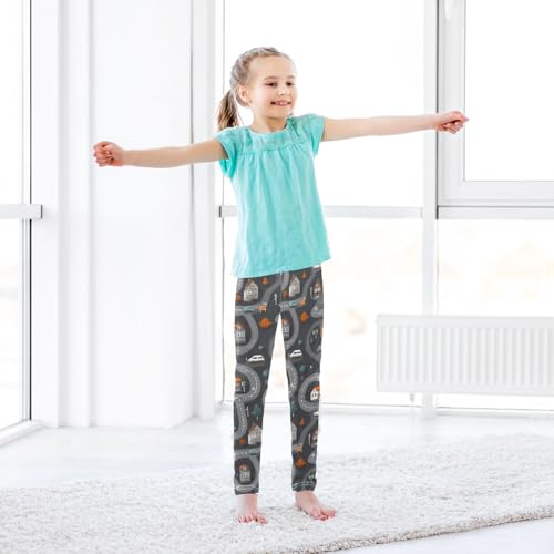 ALAZA Girls' Leggings Children's Yoga Pants Skinny Printed Dance Gray Truck Road Comfortable 4T 6