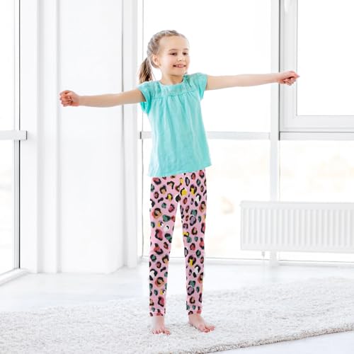 ALAZA Girls' Leggings Children's Yoga Pants Skinny Printed Dance Pink Colorful Leopard Cheetah Comfortable 4T 6