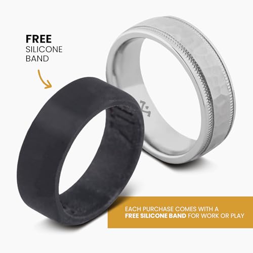 Manly Bands: Men's Cobalt Chrome Wedding Bands and Rings - Aerospace Grade Alloy, Naturally Hypoallergenic and Scratch Resistant, Perfect Gift for Men - Free Silicone Ring Included 5