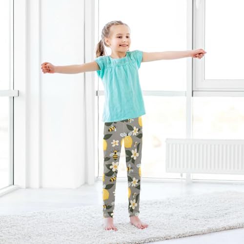 Wusikd Cute Bees Lemons Girls' Leggings Toddler Doodles Flowers Kids Yoga Pants Dance Active Tights 4T 7