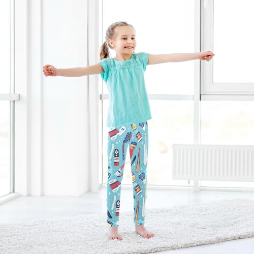 Wusikd Hockey Girls' Leggings Toddler Doodles Blue Kids Yoga Pants Dance Active Tights 4T 6
