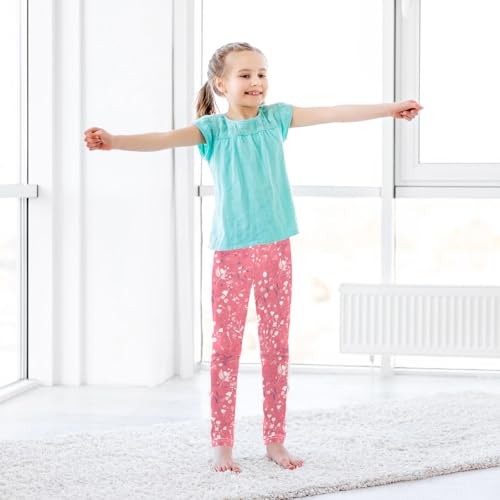 Flowers Pink Background Fashion Kids Girl's Athletic Leggings Casual High Waisted Lounge Pants Exercise 6