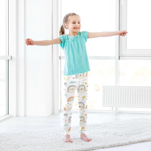 Cute Hedgehog Girls' Leggings Toddler Doodles Rainbow Clouds Kids Yoga Pants Dance Active Tights 4T 7