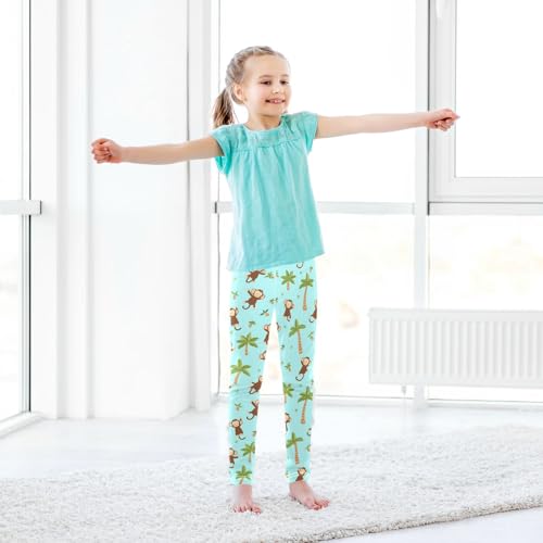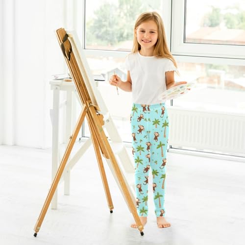 Wusikd Cute Monkey Girls' Leggings Toddler Doodles Light Blue Kids Yoga Pants Dance Active Tights 4T 7