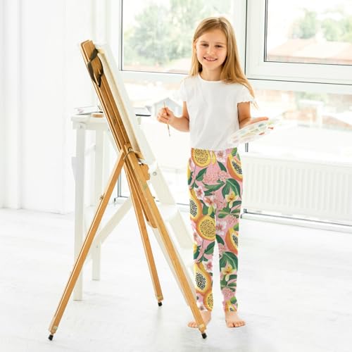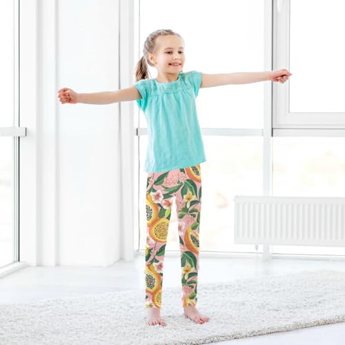 Papaya Floral Girls' Leggings Toddler Doodles Leaves Tropical Kids Yoga Pants Dance Active Tights 4T 7