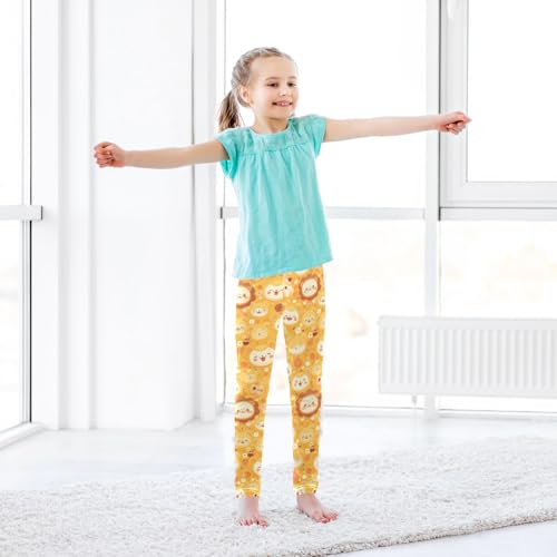 KLL Cute Lion Cartoon Pattern Yellow Toddler Girls Leggings Fashion Full Length Pants Gym 6