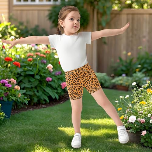 Orange Leopard Print Pattern Girls Shorts Elastic Waist Sports Shorts Girls Leggings Pants for 4-10 Years 4