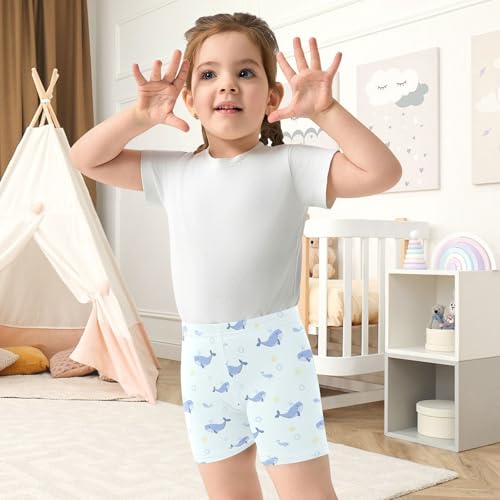 Cute Cartoon Blue Whale Girls Shorts Elastic Waist Sports Shorts Girls Leggings Pants for 4-10 Years 4