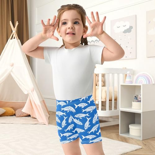 Blue Fishes Print Girls Shorts Elastic Waist Sports Shorts Girls Leggings Pants for 4-10 Years 4