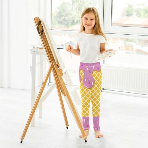 Waffle Pink Cream Girls Leggings,Workout Leggings for Girls Toddler Athletic Legging Size for 3-10T 5