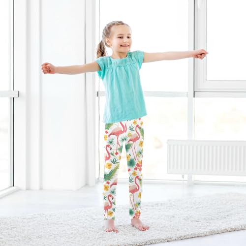 Wusikd Pink Flamingos Girls' Leggings Toddler Doodles Green Palm Trees Kids Yoga Pants Dance Active Tights 4T 7