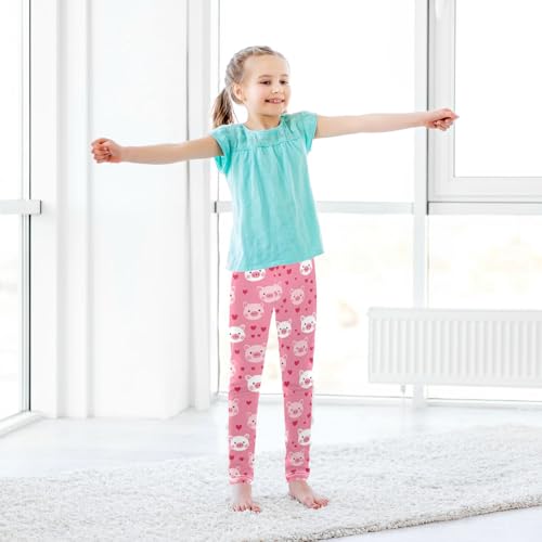 Cute Pig Girls' Leggings Toddler Doodles Pink Hearts Kids Yoga Pants Dance Active Tights 4T 5