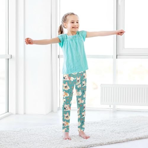 Wusikd Funny Dogs Girls Leggings Toddler Doodles Green Kids Yoga Pants Dance Active Tights 4T 7