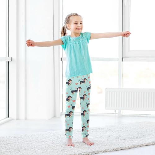Dachshund Dogs Girls' Leggings Toddler Doodles Love Hearts Kids Yoga Pants Dance Active Tights 4T 7