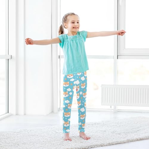 Wusikd Blue Sky Cloud Girls' Leggings Toddler Doodles Star Dog Kids Yoga Pants Dance Active Tights 4T 7