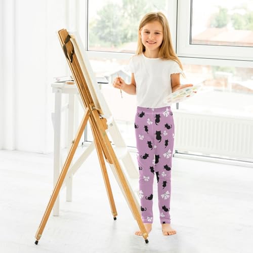 Black Cat and Bow Girls Leggings,Workout Leggings for Girls Toddler Athletic Leggings Size for 3-10T 4