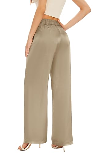 • FEATURE -- Silky fabric, back elastic waist, high-waisted wide leg style, pleated front, loose fit, breathable and soft fabric, zipper closure, two side pockets