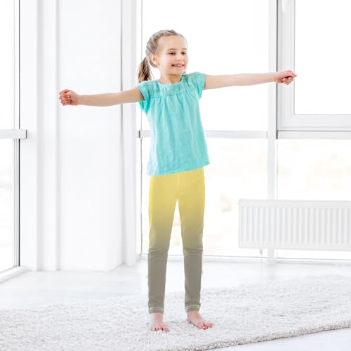 DOMIKING Yellow Gray Gradient Girl's Leggings Pants Kids' Yoga Pants Stretchy Running Tights 4 Years 5